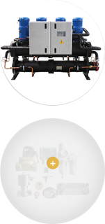 工作原理 : 采用循環流動于共用管路中的水、從水井、湖泊或河流中抽取的水或在地下盤管中循環流動的水為冷(熱)源,制取冷(熱)風或冷(熱)水的設備